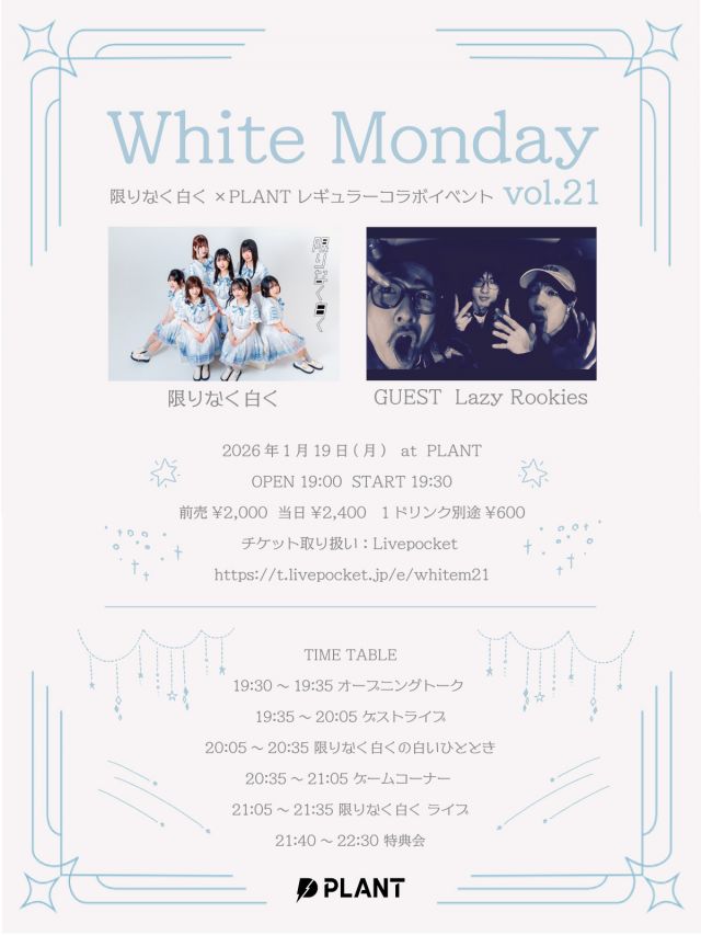 出演:限りなく白く / Lazy Rookies 料金:前売 ¥2...