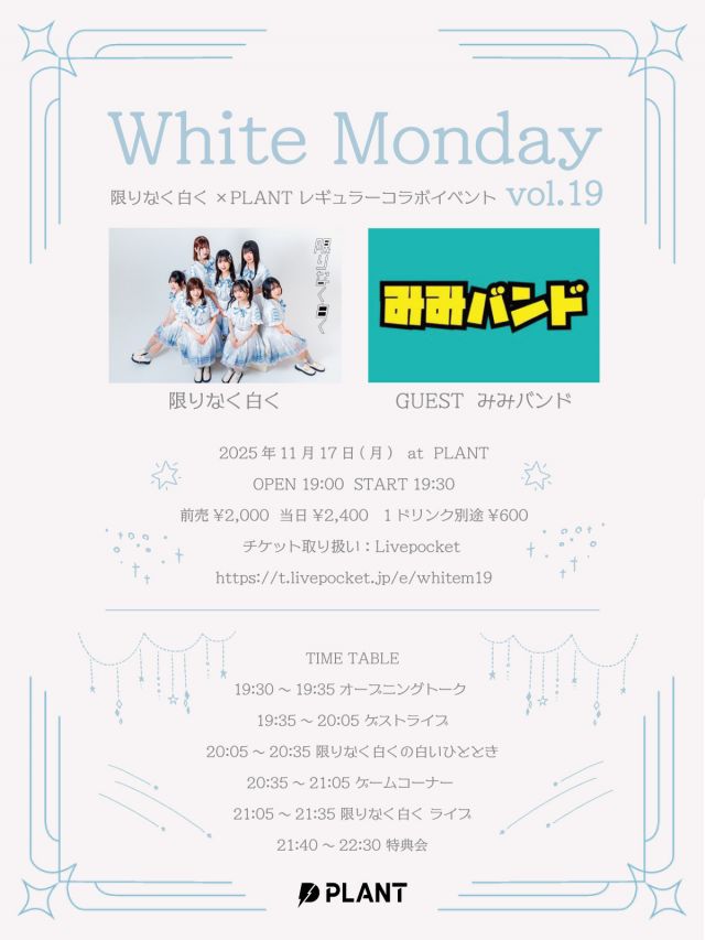 出演:限りなく白く / みみバンド 料金:前売 ¥2,000 (税...