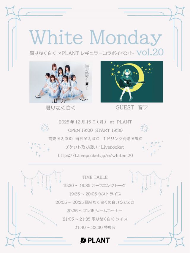 出演:限りなく白く/音ヲ 料金:前売 ¥2,000 (税込)/ 当...