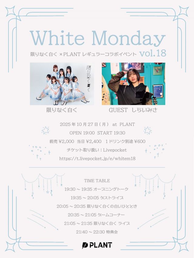 出演:限りなく白く / しらいみさ 料金:前売 ¥2,000 (税...