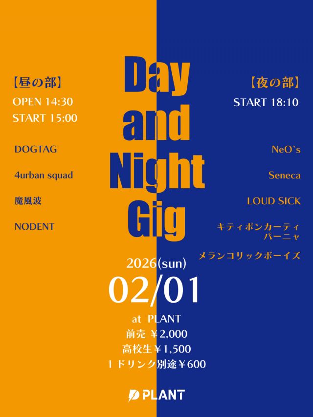2026年2月1日(日) Day and Night Gig